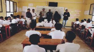 واستُقبل الفريق من قِبل عدد من مديري المدارس، حيث شملت الجولة في زنجبار مدرسة سواحل للتعليم الأساسي والثانوي بنين، ومجمع بلقيس للبنات، ومجمع خولة للبنات، فيما شملت في خنفر مدرسة الخنساء للبنات ومدرسة الحمزة للأولاد بجعار.