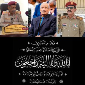بعث قائد المنطقة العسكرية الثانية، قائد لواء حضرموت، مساء اليوم؛ برقية تعزية ومواساة إلى كلاً من اللواء هيثم قاسم طاهر، رئيس اللجنة العسكرية والأمنية العليا، والعميد الركن عبدالدائم محمد الشعيبي، قائد لواء بارشيد، التابع للمنطقة العسكرية الثانية، في وفاة عمهم العقيد نصر صلاح طاهر.
