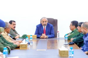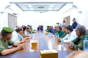 وترأس الرئيس الزُبيدي، خلال الزيارة، اجتماعًا ضم اللواء مطهر الشعيبي ومساعديه ومديري الإدارات، واستمع منهم إلى مجمل الصعوبات التي تواجه عملهم، والجهود المبذولة في مسار تأهيل الكوادر الشابة وتمكينها.