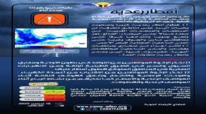 حذر مركز التنبؤات الجوية والإنذار المبكر التابع للهيئة العامة للطيران المدني والأرصاد، من أمطار رعدية غزيرة في عدد من المحافظات، وذلك بحسب مخرجات النماذج العددية وتحليل خرائط الطقس المختلفة.