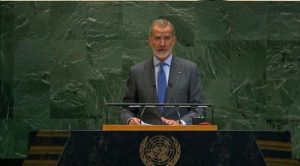 وقال العاهل الإسباني في كلمته أمام أعمال الجمعية العامة للأمم المتحدة: “لا يمكن أن نغض الطرف عن قتل المدنيين وتهجير مئات الآلاف في قطاع غزة، ونطالب إسرائيل بوقف القتل في غزة وتطبيق القانون الدولي الإنساني”.
