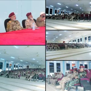 نظمت شُعبة التوجية المعنوي بالمنطقة العسكرية الثانية، صباح اليوم في المكلا؛ محاضرة توجيهية عن تحييد المؤسسة العسكرية بعيداً عن الحزبية والسياسية والمناطقية والقبلية، بحضور رئيس عمليات المنطقة العسكرية الثانية، العميد الركن محسن عبدالله بن علي الحاج.