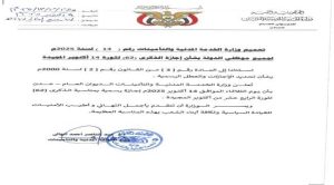 وبهذه المناسبة، رفعت الوزارة أصدق التهاني وأطيب الأمنيات للقيادة السياسية ولكافة أبناء الوطن بمختلف فئاته ومكوناته، متمنية للجميع دوام التقدم والازدهار في ظل قيم الثورة التحررية ومبادئها المجيدة.