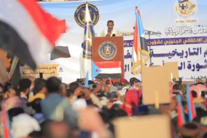 وأضاف: «نُجدد العهد والوفاء والتفويض لقيادتنا السياسية ممثلة بالرئيس القائد عيدروس بن قاسم الزبيدي، ونؤكد أننا على العهد ثابتون وصامدون. هذا الشعب الجبار هو المخزون الاستراتيجي الذي لا ينضب، ومحزم القوة الذي لا ينفد. امضوا بثقة في سبيل تحقيق أهداف ثورتنا وإعلان دولتنا الجنوبية الفيدرالية، فشعب الجنوب معكم في السلم أو الحرب أو التفاوض».