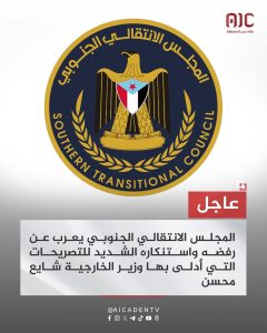 يعرب المجلس الانتقالي الجنوبي عن رفضه واستنكاره الشديد للتصريحات التي أدلى بها وزير الخارجية شايع محسن، والتي حملت إساءة صريحة لقضية شعب الجنوب، وتناقضًا مع واقع التفاهمات السياسية القائمة، ومحاولة لقلب حقائق الشراكة المنبثقة عن اتفاق الرياض، ومشاورات الرياض، والتفاهمات مع التحالف العربي.