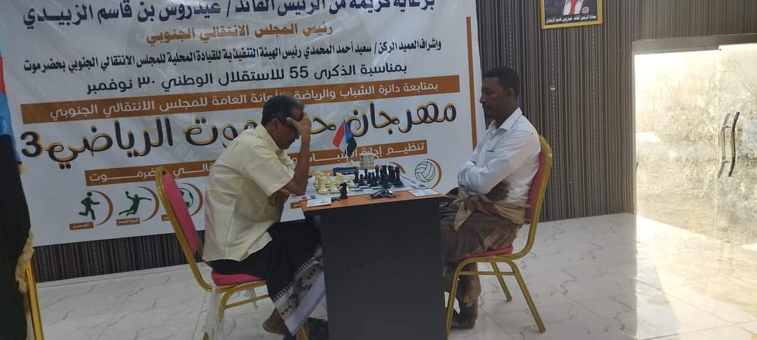 تواصلت مساء اليوم الجمعة البطولة الشطرنجية المفتوحة التي يرعاها الرئيس القائد عيدروس بن قاسم الزبيدي، رئيس المجلس الانتقالي الجنوبي، نائب رئيس مجلس القيادة الرئاسي، ضمن مهرجان حضرموت الرياضي الثاني، الذي تنفذه إدارة الشباب والطلاب بانتقالي حضرموت، بإقامة الجولة الخامسة من البطولة المفتوحة، التي تقام وفقا للنظام السويسري ومن ٧ جولات .