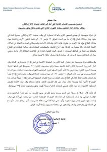 أعلنت شركة بترومسيلة اليوم عن اضطرارها إلى وقف عمليات الإنتاج والتكرير بالكامل في حقول وآبار ومنشآت قطاع (14)، وذلك اعتباراً من يوم السبت الموافق 29 نوفمبر 2025م، بسبب التدهور الحاد في الأوضاع الأمنيةالمحيطة بمنشآت القطاع.