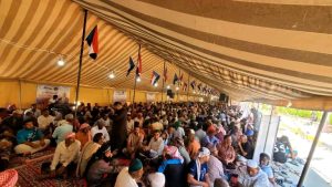 وشهد مخيم الاعتصام توافدا واسعا لوفود شعبية من مختلف مديريات وادي وصحراء حضرموت، عبر المشاركون خلالها عن دعمهم للمجلس الانتقالي الجنوبي، وللقوات الجنوبية في مساعيها لاستعادة دلة الجنوب العربي، مؤكدين أهمية تعزيز وحدة الصف الجنوبي وترسيخ إصرار الأجيال على تحقيق تطلعاتهم الوطنية.