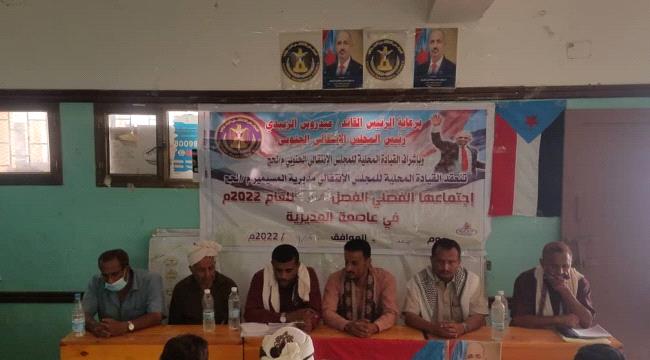 عقدت القيادة المحلية للمجلس الانتقالي الجنوبي بمديرية المسيمير محافظة لحج، صباح اليوم الاحد، اجتماعها النصف سنوي للعام 2022م، برئاسة الاستاذ عبدالفتاح جمال سعيد الحوشبي رئيس القيادة المحلية بالمديرية .