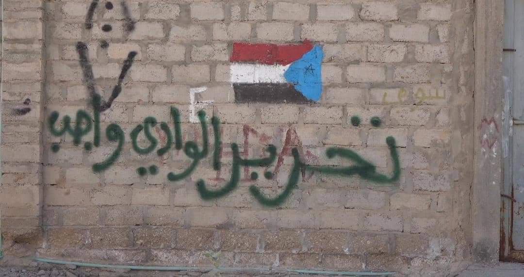 مدن وادي حضرموت شهدت ايضا كتابة الشعارات على الحيطان منددة باستمرار بقاء عناصر المحتل اليمني في وادي حضرموت، وشعارات أخرى تطالب بتنفيذ الشق العسكري من اتفاق ومشاورات الرياض.