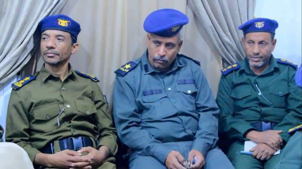 وأستمع رئيس اللجنة بحضور عضوا اللجنة عميد ركن دكتور قائد عاطف وعميد ركن محمد عبدربه هادي من مدراء الإدارات وقادة الوحدات إلى أبرز الصعوبات والعراقيل التي تواجههم والإطلاع على سير العمل الأمني والشرطوي في مديريات الوادي والصحراء.
