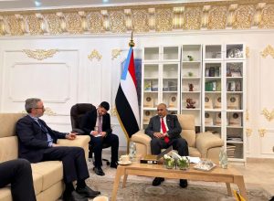 وناقش الجانبان مستجدات الأوضاع السياسية، والإنسانية، والعسكرية، والأمنية في بلادنا، والجهود الإقليمية والدولية الهادفة لإنهاء الحرب وإحلال السلام في المنطقة، والدور الذي تلعبه بعثة الاتحاد الأوروبي في دعم جهود مجلس القيادة الرئاسي والحكومة، لإنعاش الوضع الاقتصادي ورفع المعاناة الإنسانية عن شعبنا.