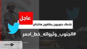 اطلق ناشطون ومغردون جنوبيون مساء اليوم الثلاثاء، حملة هاشتاق بعنوان ‎#الجنوب_وثرواته_خط_احمر ، على أشهر منصات مواقع التواصل الاجتماعي (تويتر).