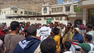 حيث تجمع العشرات من المواطنين في وقفة احتجاجية امام ادارة السلطة المحلية بمديرية سيئون مرددين شعارات تطالب بتحسين الخدمات في المديرية