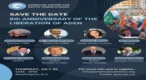أعلن المركز الامريكي لدراسات جنوب اليمن ACSYS عن إقامة مؤتمر هام بمناسبة الذكرى الثامنة لتحرير العاصمة عدن من المليشيات الحوثية .