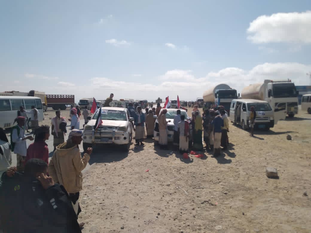 موكب مديرية حجر المتوجه الى سيئون للمشاركة في مليونية الخلاص وقد وصل قبل قليل إلى منطقة (الادواس)
