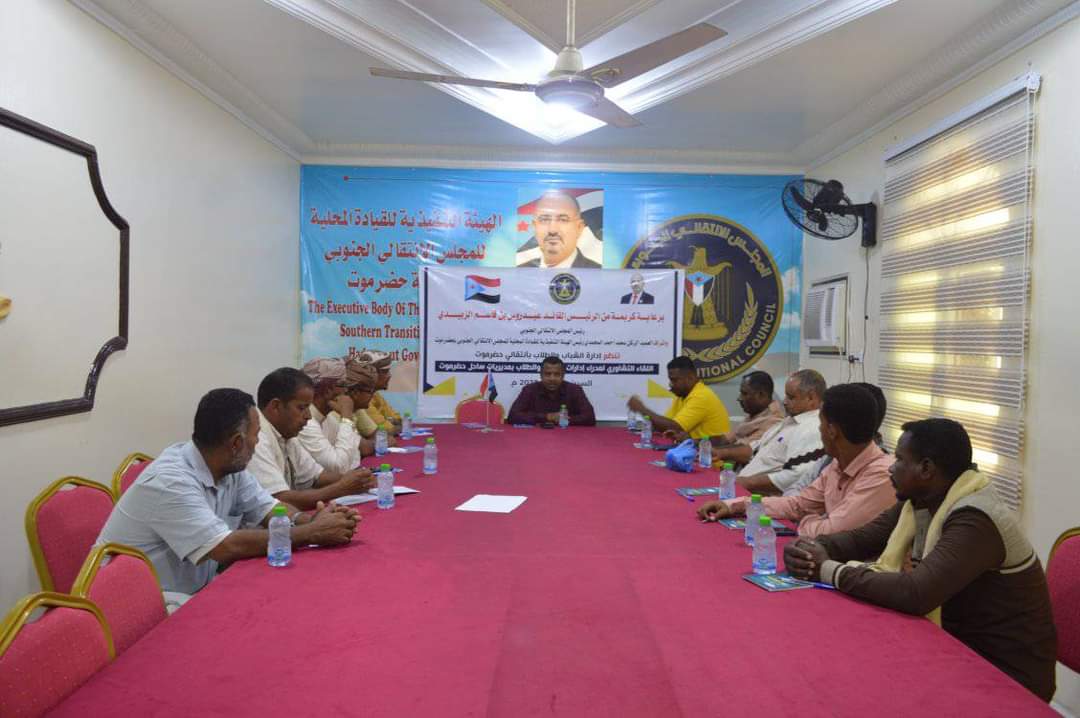 عقدت إدارة الشباب والطلاب بالهيئة التنفيذية للقيادة المحلية للمجلس الانتقالي الجنوبي بحضرموت صباح اليوم اللقاء التشاوري بمديري إدارة الشباب والطلاب بمديريات ساحل حضرموت.