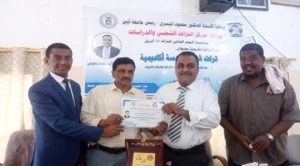 كرم القائم بأعمال رئيس منسقية جامعة أبين الدكتور محمد حيدرة سالم، أمس الخميس ،الاستاذ سعيد بايونس بدرع منسقية جامعة أبين ويأتي هذا التكريم بمناسبة اليوم العالمي للتراث.