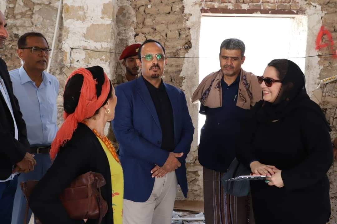 واستمع المحافظ من البروفيسورة سلمى الدملوجي، الى جهود المؤسسة بالتنسيق مع المنظمات الدولية لتأهيل المواقع والمساجد الأثرية في مواقع متعدّدة بحضرموت، للحفاظ على الموروث التاريخي والثقافي للمحافظة.