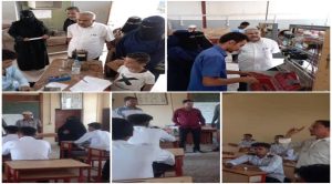 ورئيس قسم الاختبارات الاستاذة الاستاذه حنان باشطح ورئيس قسم المتابعة الاستاذه ريهام محمد على سير الاختبارات.. مستمعين إلى شرح من مدير المعهد المهني الصناعي المنصورة المهندس جهاد معتوق والمختصين حول سير الاختبارات وآليات اعتماد النماذج الاختبارية وتوزيع الطلاب على القاعات واللجان وفق الخطة المعتمدة.