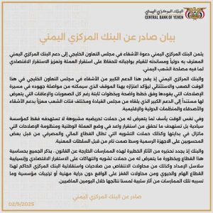 أصدر البنك المركزي اليمني، اليوم، بياناً ثمّن فيه دعوة الأشقاء في مجلس التعاون الخليجي إلى دعم البنك المركزي اليمني المعترف به دولياً ومساندته في أداء مهامه الهادفة إلى الحفاظ على استقرار العملة وتعزيز الوضع الاقتصادي بما يخدم مصلحة الشعب اليمني.