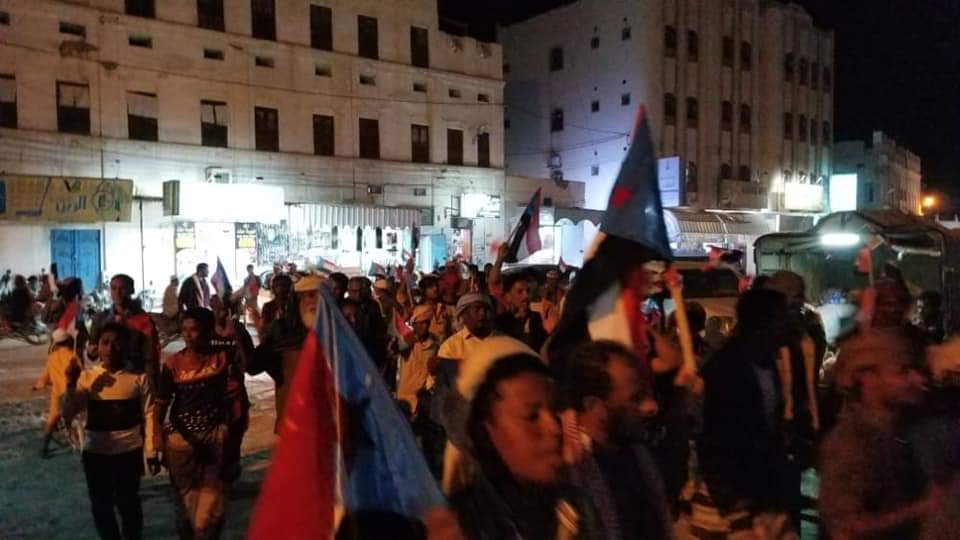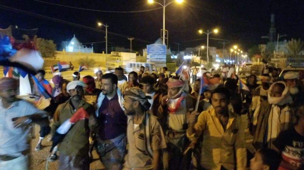 وحذر المشاركون في المسيرة الجماهيرية من تجاهل و عدم الإستجابة لمطالب أبناء المحافظة بإخراج “العسكرية الأولى” من الوادي ورفضوا أي حلول ترقيعية أو التفاف على الشق العسكري من اتفاق الرياض .