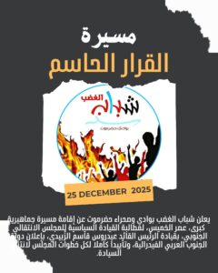 * المطلب الشعبي: التأكيد على أن إعلان “دولة الجنوب العربي” هو المطلب الأول والأساسي لأبناء وادي وصحراء حضرموت.
