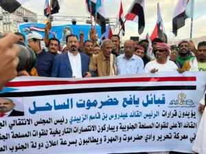 من جانبهم، أكد أبناء قبائل يافع بساحل حضرموت وقوفهم الكامل خلف القيادة السياسية الجنوبية، ممثلة بالرئيس القائد عيدروس بن قاسم الزُبيدي، رئيس المجلس الانتقالي الجنوبي، مطالبين بالإسراع في إعلان دولة الجنوب العربي.