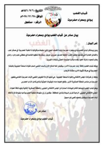 • بيان صادر عن شباب الغضب بوادي وصحراء حضرموت