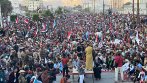 سابعاً: يؤكد المحتشدون أن الشرعية الحقيقية اليوم هي شرعية الشعب الجنوبي، المعبر عنها بهذه الحشود المليونية السلمية، وهي الشرعية المستمدة من الأرض والهوية والتاريخ والتضحيات، فشعب الجنوب هو صاحب الحق الأصيل في تقرير مستقبله، وهو الأدرى بما يخدم مصالحه ويحفظ أمنه وكرامته، ولا وصاية على إرادته ولا شرعية تعلو فوق صوته الحر.