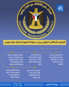 يضع البيان الدعوة السعودية في إطار منسجم مع تطلع المجلس إلى رعاية إقليمية ودولية جادة للقضية الجنوبية، مع التأكيد على دور المكوّنات الجنوبية الشريكة الموقعه على الميثاق الوطني الجنوبي بوصفها إطارًا سياسيًا جامعًا يعبر عن الإرادة الوطنية لشعب الجنوب.
