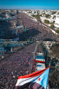 وتؤكد الجماهير المحتشدة أن أي إعلان أو بيان أو إجراء يتعارض مع إرادة شعب الجنوب، أو يصدر خارج مؤسساته الشرعية، هو باطل سياسياً وشعبياً، ولا يترتب عليه أي أثر، ولا يُلزم شعب الجنوب أو قواه الوطنية بشيء.