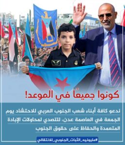 ​يا أحرار الجنوب، موعدنا اليوم في العاصمة عدن.