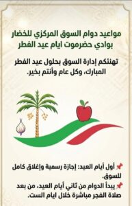 صادر عن ادارة السوق المركزي للخضار والفواكه بوادي حضرموت..