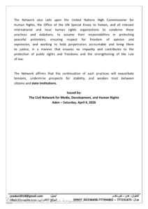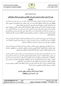 وحذرت الشبكة في ختام بيانها من أن استمرار مثل هذه الممارسات القمعية من شأنه أن يفاقم حالة الاحتقان، ويقوض فرص الاستقرار، ويضعف ثقة المواطنين بمؤسسات الدولة.
